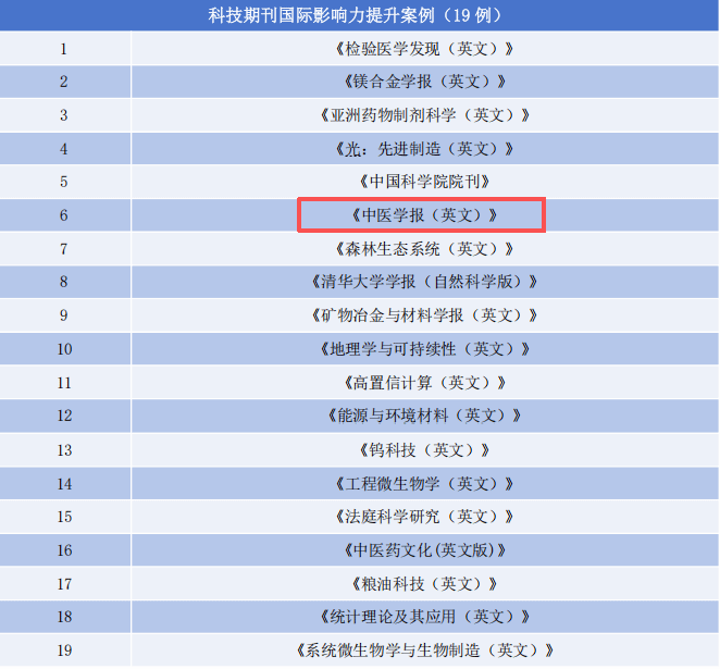 《中医学报(英文)》入选“科技期刊国际影响力提升案例”