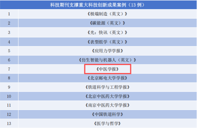 《中医学报》入选“科技期刊支撑重大科技创新成果案例”